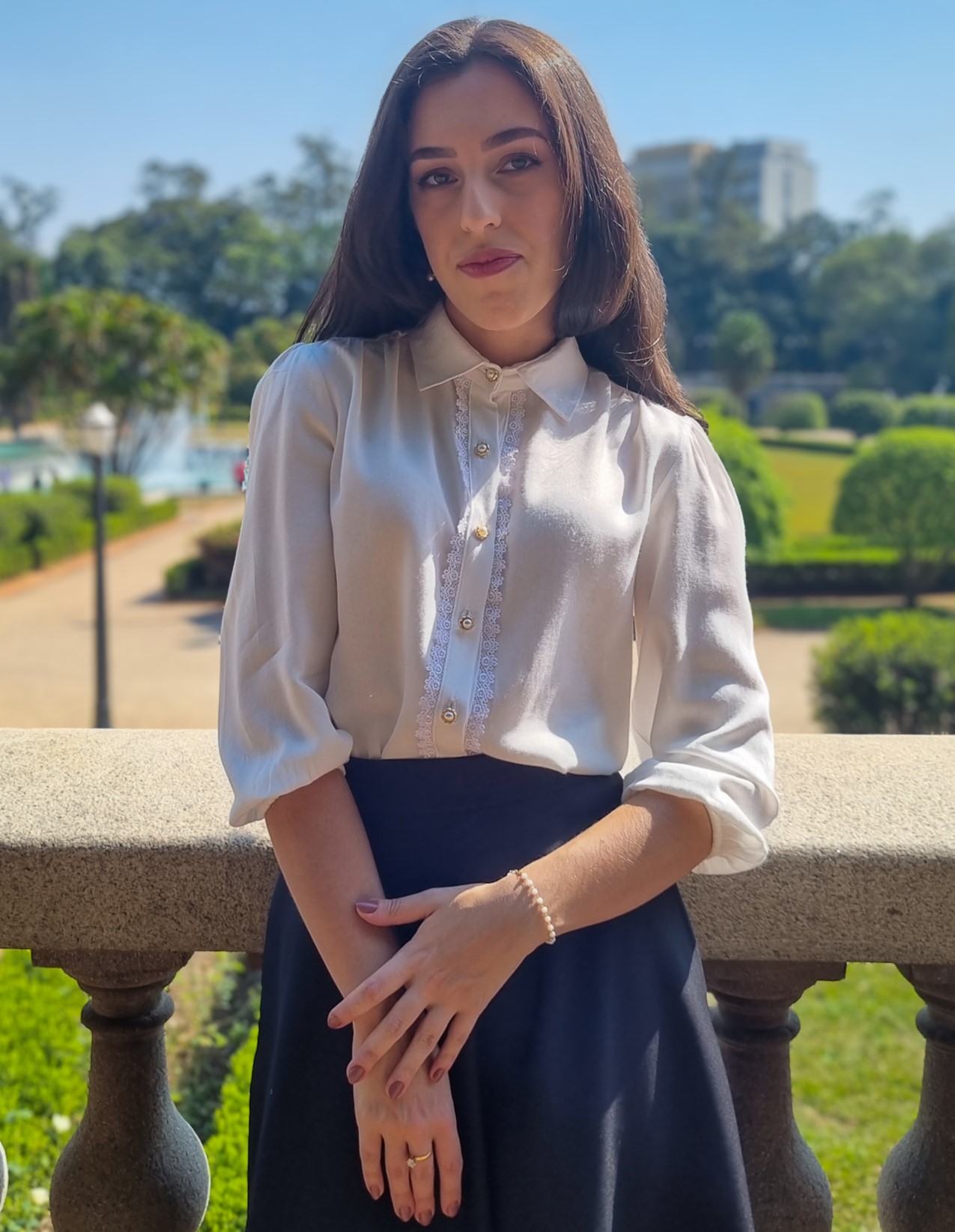 Inspirada no lírio, símbolo de pureza e virtude, a nossa Camisa Lírio reflete esses valores em seu design elegante e delicado. Confeccionada em 100% viscose, a peça oferece um toque leve e um caimento impecável. Cada detalhe foi pensado para trazer elegância e conforto em uma peça única. Com gola tradicional e mangas bufantes 3/4 que se ajustam delicadamente aos braços através de um elástico discreto, a Camisa Lírio é o exemplo perfeito de charme e estilo atemporal.